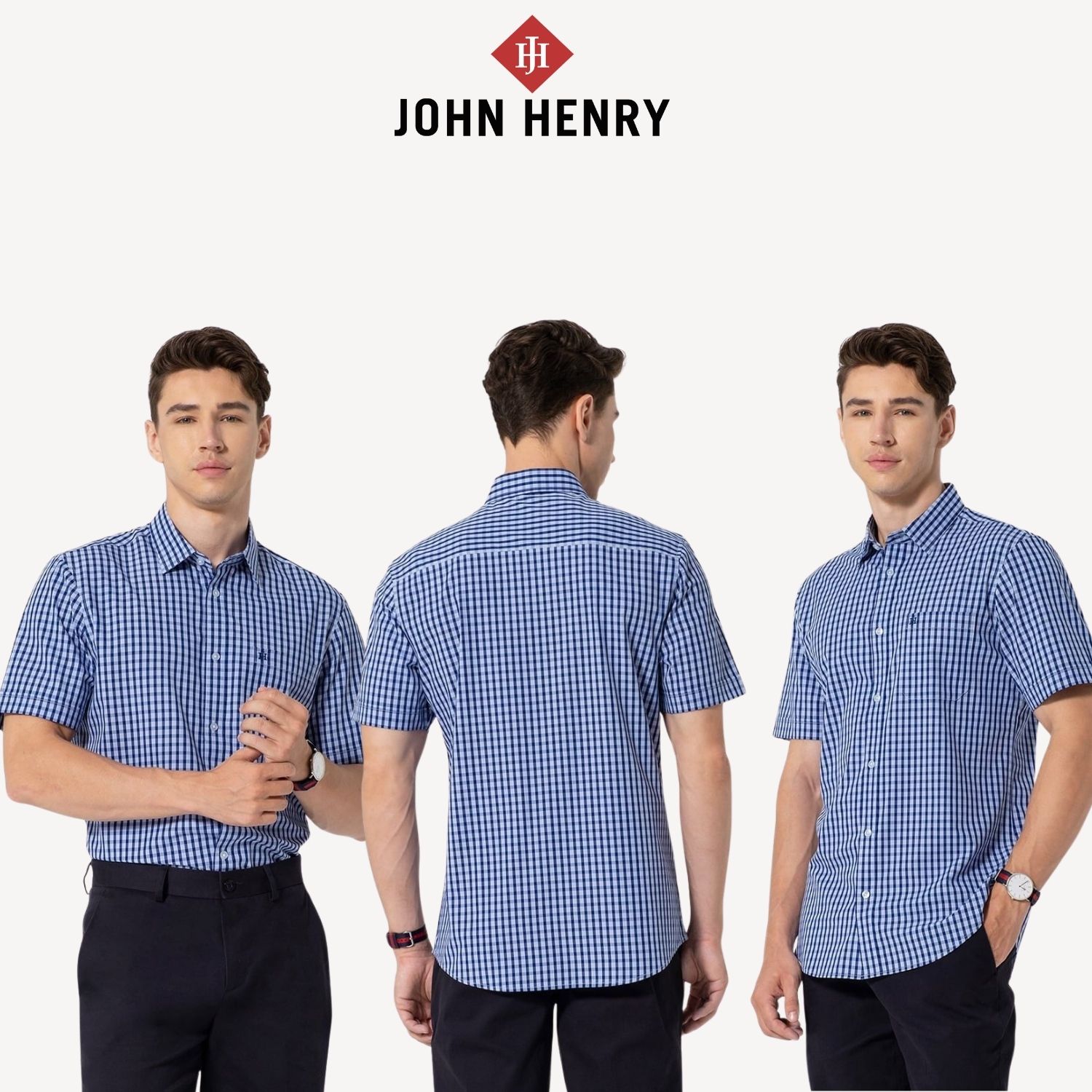 JOHN HENRY Áo Sơ Mi Nam Tay Ngắn Form Ôm WS25FH70T-SDBB