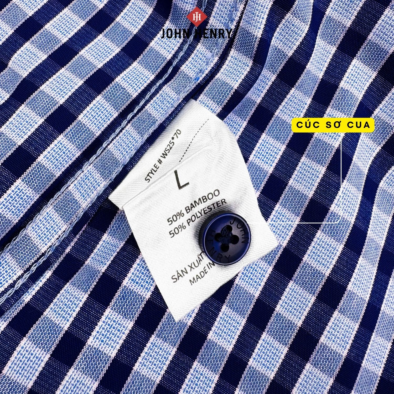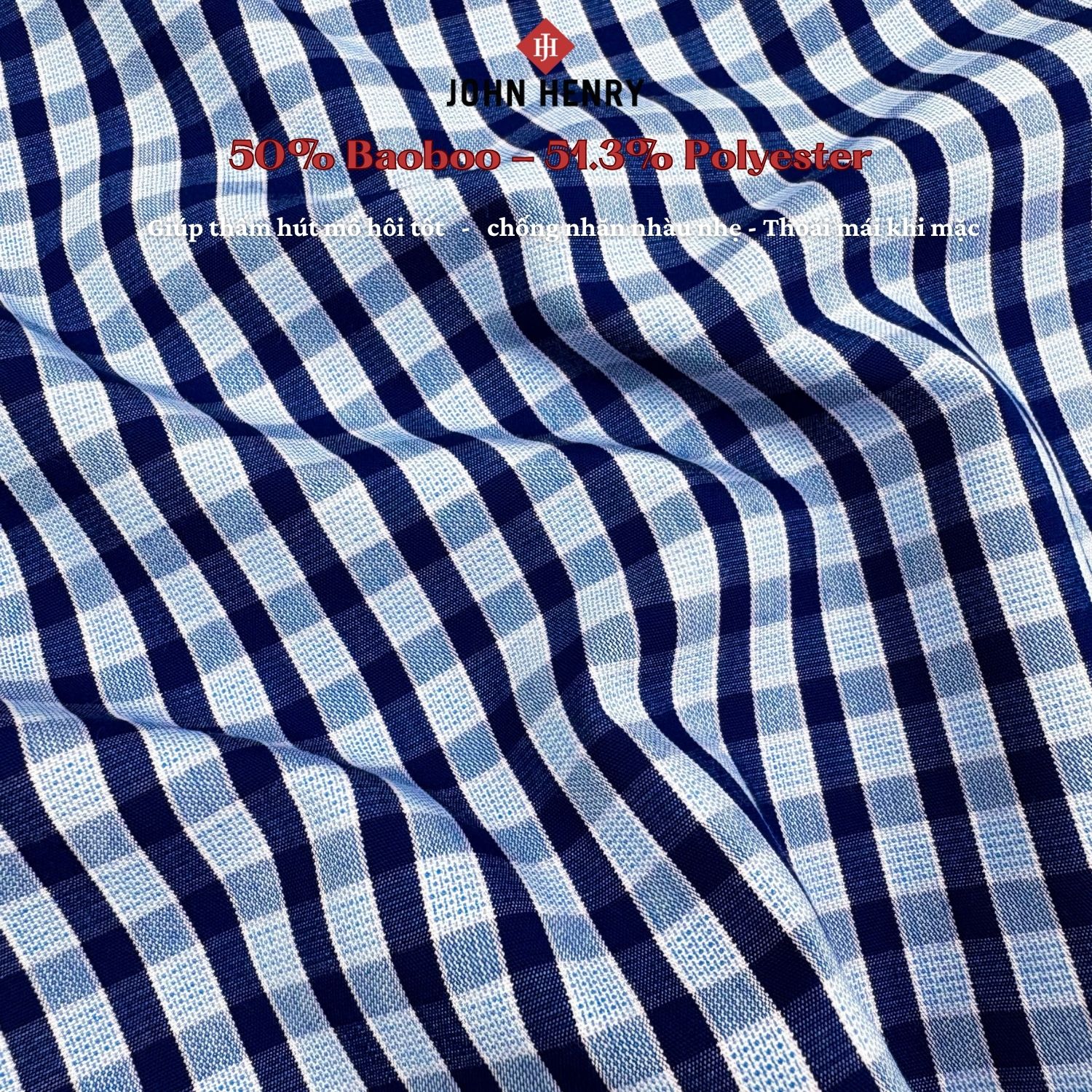 - Chất liệu 50% bamboo và 50% polyester – kết hợp giữa sự mềm mại, thân thiện với làn da từ sợi tre và độ bền, khả năng giữ form tốt của polyester. Vải nhẹ, ít nhăn, tạo cảm giác thoải mái và dễ chịu suốt ngày dài.