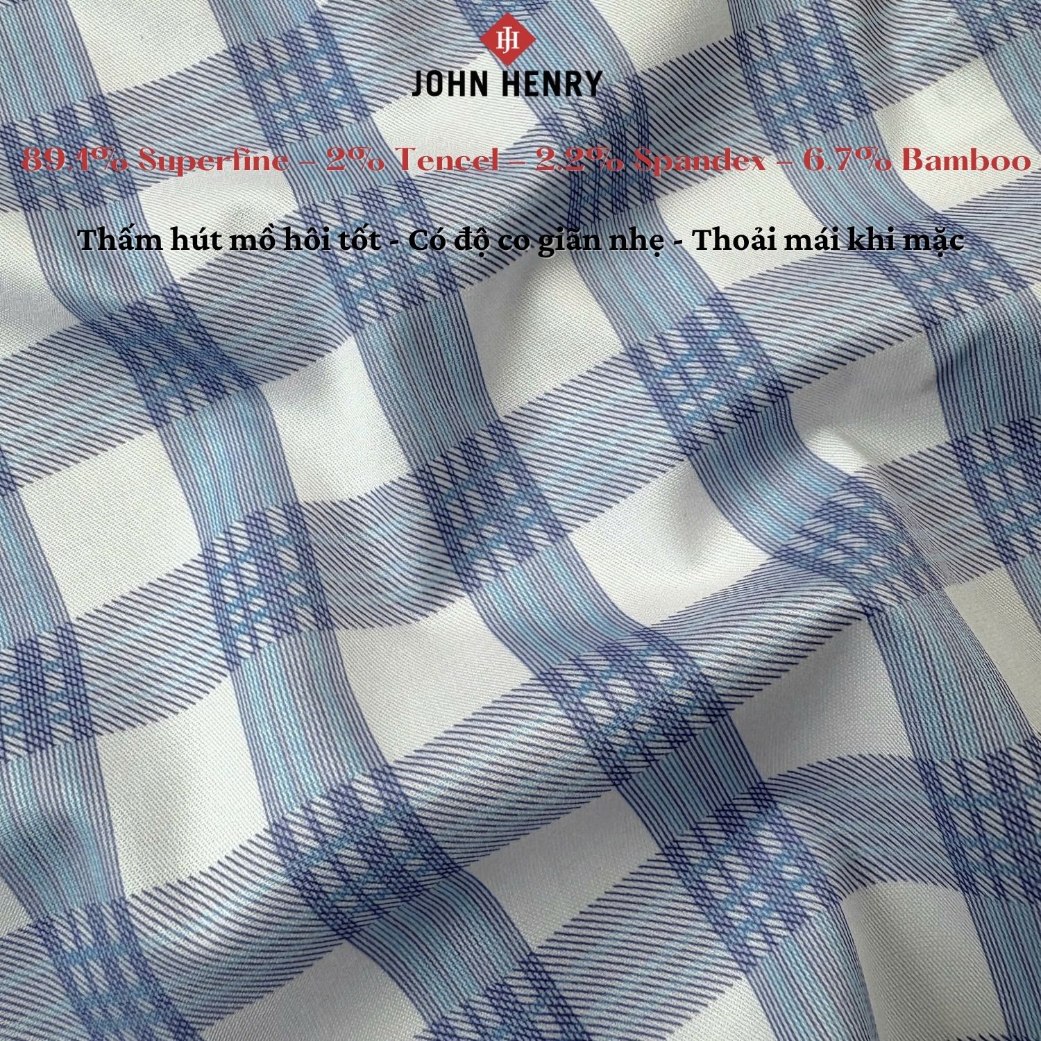 - Áo sơ mi 50% Bamboo và 50% Polyester giúp thấm hút mồ hôi, thoải mái và co giãn nhẹ khi mặc.