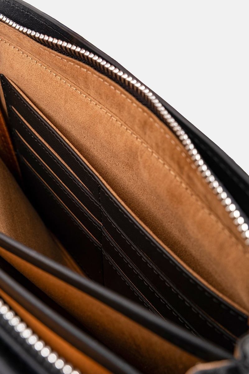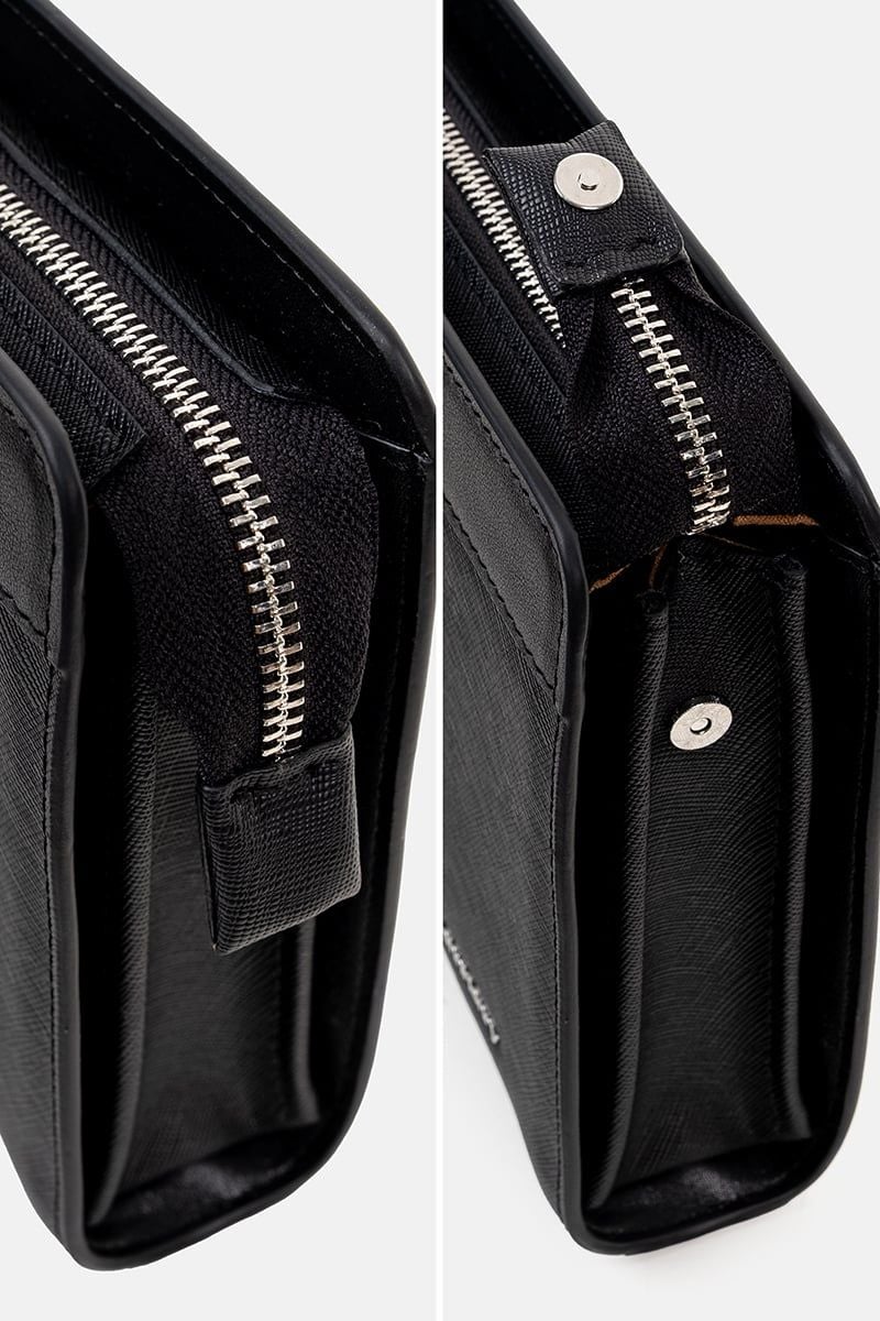 Thiết kế thanh lịch đi kèm khóa mật khẩu an toàn và dây đeo tay tiện lợi, mang lại cảm giác an toàn và thoải mái khi mang theo. Bên trong chia nhiều ngăn nhỏ hợp lý, dễ dàng sắp xếp tiền mặt, thẻ và giấy tờ cá nhân.